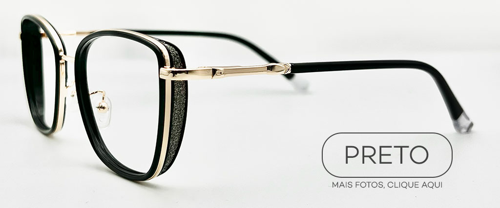 Combina com quais tipos de rosto: perfeito para rostos redondos e ovais, pois o formato quadrado ajuda a definir e equilibrar as proporções; em rostos triangulares, adiciona harmonia à parte superior do rosto; em rostos mais alongados, contribui para um visual mais estruturado e marcante.