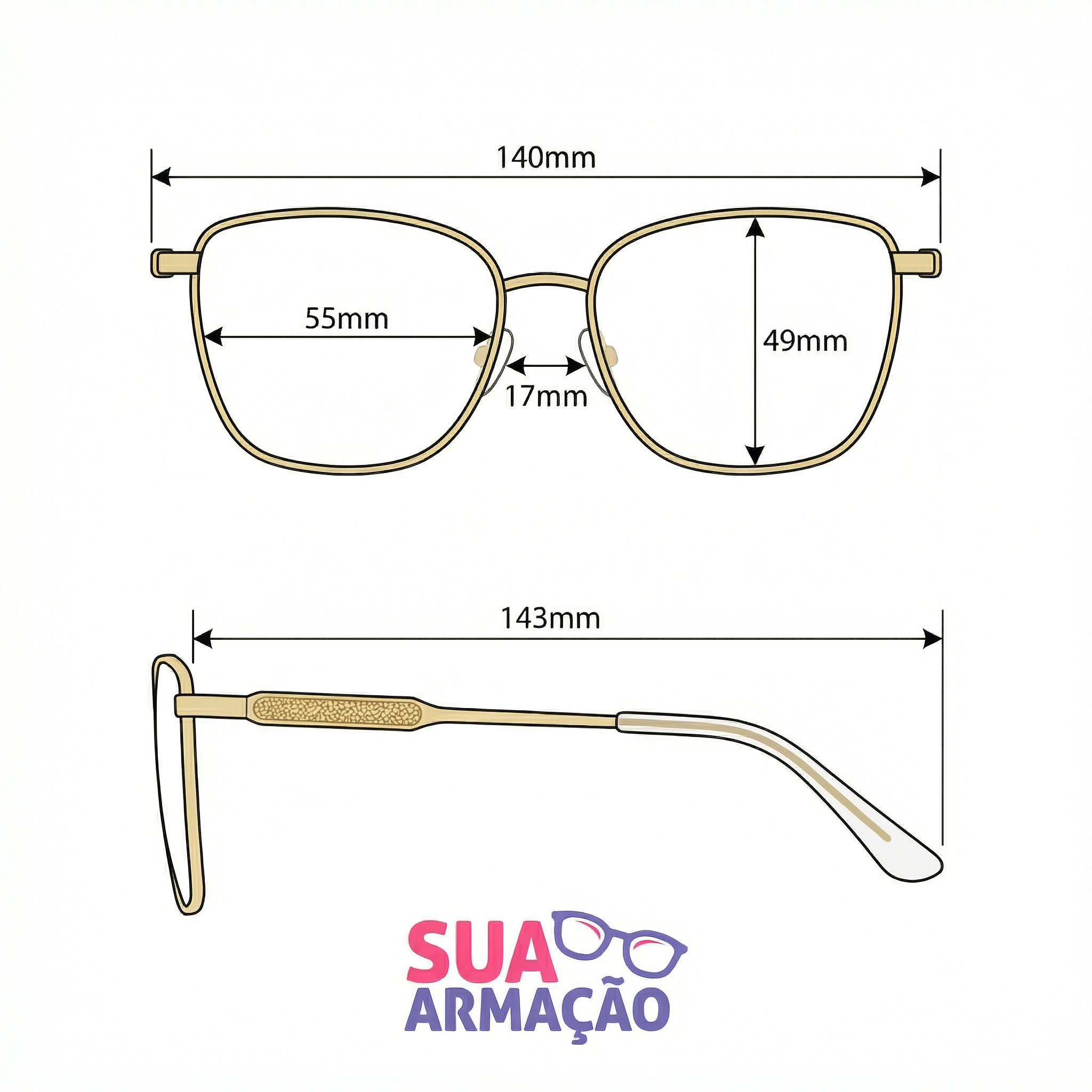-frente da armação 14,0 cm (140 mm).
